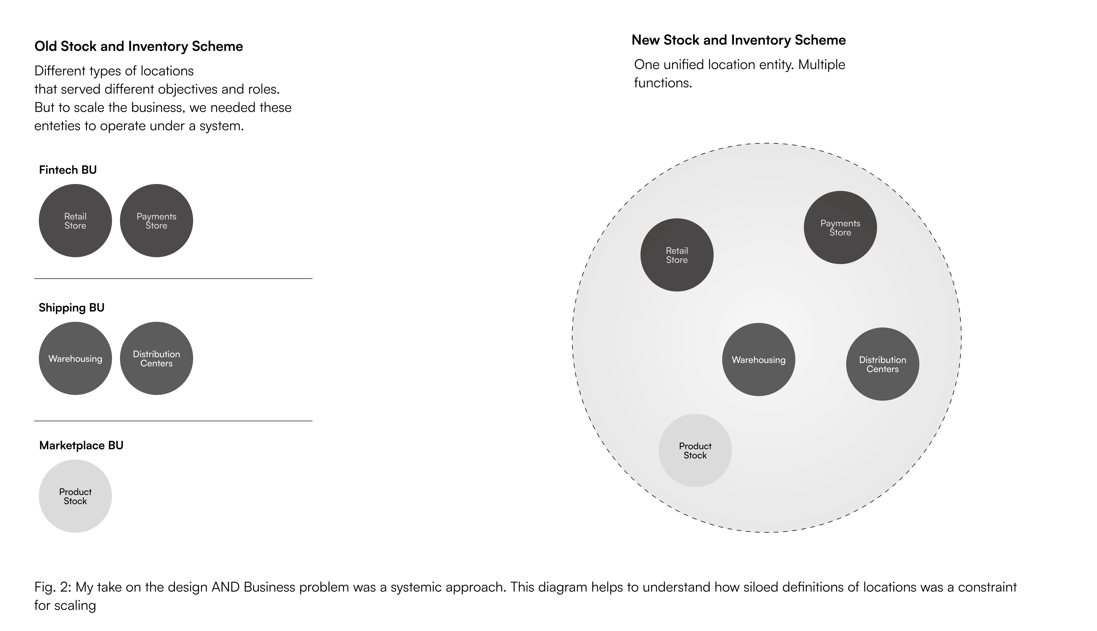 Mercado Libre has three massive business units: Marketplace, Shipping, and Payments. While they operate within a complex eco system, each runs its own product, design, and engineering team (roughly 500 to 1,000 people each). The business bet was to bring CPG partners in major countries into the Mercado Libre ecosystem, so we needed to support their networks of physical stores. The value prop was delivery in minutes was the goal. But that required a capability that didn't exist: multi-location inventory management that cuts across all three BUs.