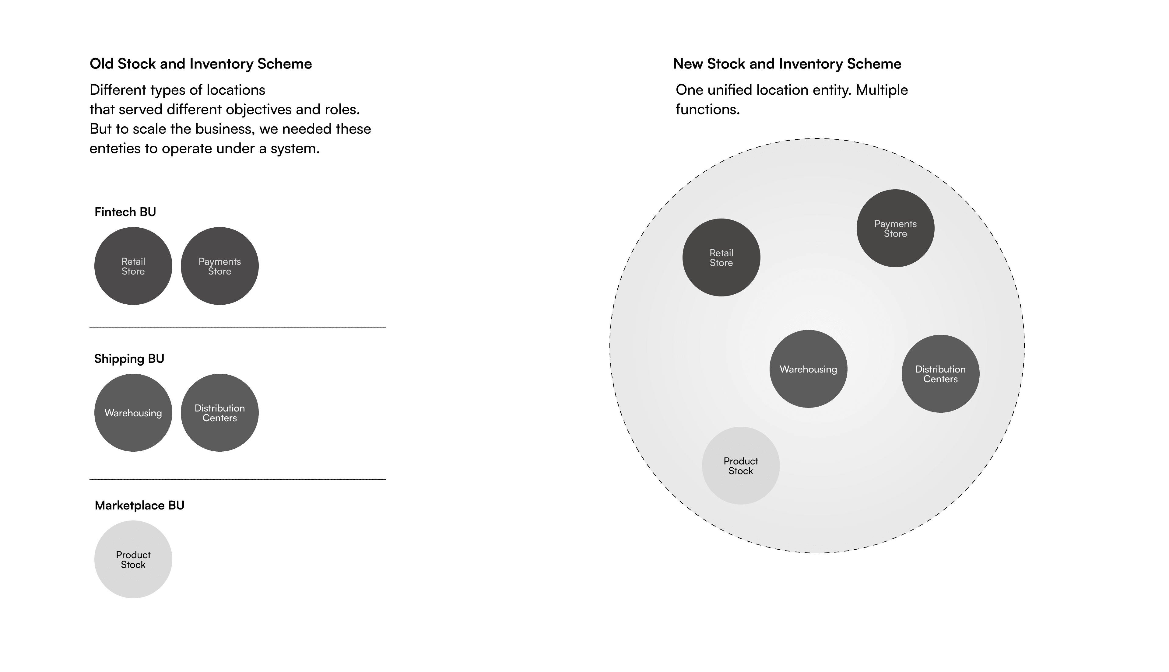Mercado Libre has three massive, independent business units: Marketplace, Shipping, and Payments. Each runs its own product, design, and engineering team (roughly 500 to 1,000 people each). They share a platform but historically operated independently in the vast ecosystem. The strategic bet was to bring CPG partners in major countries into the Mercado Libre ecosystem. We needed to support their networks of physical stores. Rapid delivery in minutes was the goal. But that required a capability that didn't exist: multi-location inventory management that cut across all three BUs simultaneously.