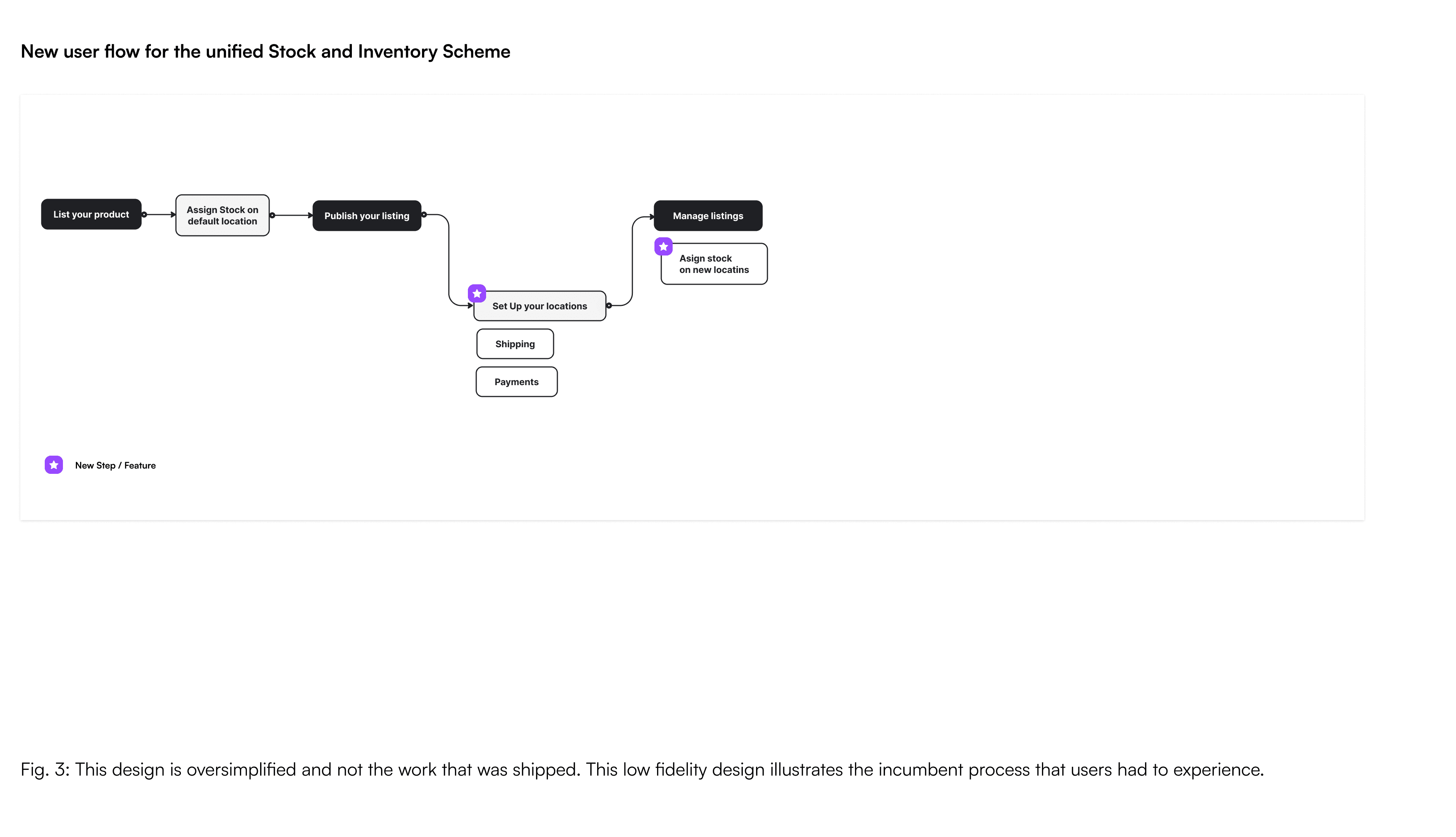 We chose listing-first. Sellers already had a familiar way of operating: they know their catalog. Forcing location setup upfront would have broken that model and added friction before any value was delivered. Instead, we layered complexity progressively: start with what sellers already know, then expand into the new paradigm. The flow we designed reflected that decision: